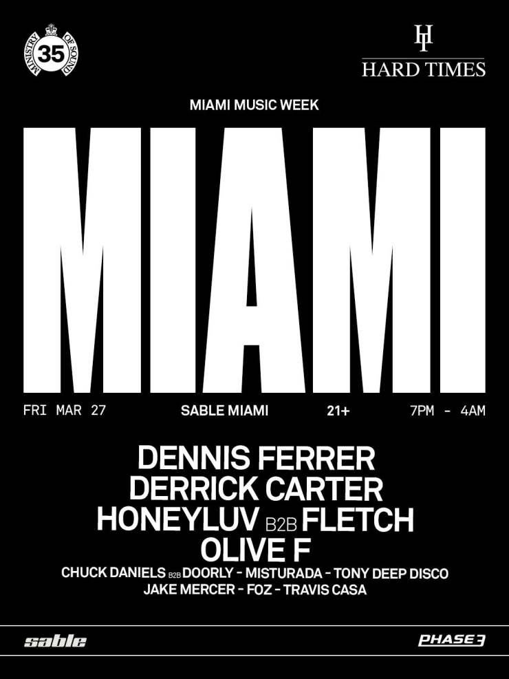 Ministry of Sound announces the next stop in its 35-Year World Tour with a special collaboration with Hard Times for Miami Music Week. On Friday, 27th, headliners Dennis Ferrer, Derrick ...
