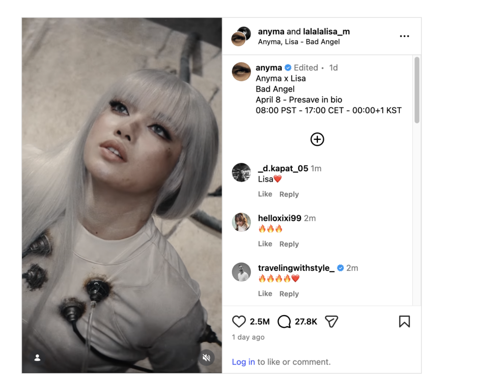 There are collabs that get announced and you think, sure, that makes sense, good for them. And then there are collabs that drop today at noon, two days before one of the most anticipated Coachella sets in recent memory, and you immediately understand that something larger is being orchestrated. LISA and Anyma‘s ;’Bad Angel’ is the second kind. It’s out right now. Go listen to it. The announcement came Tuesday via a joint Instagram post — a cinematic teaser that felt more like a film trailer than a song preview. LISA wakes up on a marble slab, wired to tubes, surrounded by what looks like ancient Greek or Roman ruins corrupted by digital decay. She strains against the restraints, and over a pulsing, haunted melodic techno backdrop, you hear her voice: “I’m pretty pretty bad for an angel.” Then the camera cuts to Anyma in the same wasteland. Fade to black. The teaser isn’t just pretty — it’s lore. What you’re seeing is ÆDEN, Anyma’s entirely new audiovisual universe that debuts live for the first time this Friday at Coachella. The setting — marble ruins, digital decay, a figure waking up amid wires — maps directly onto the ÆDEN mythology Anyma has been building since February, described as a “digital renaissance” where humans and technology evolve alongside each other. LISA doesn’t just appear in the video. She inhabits the world. She is the bad angel of ÆDEN, and if that isn’t one of the most deliberate and well-executed character placements in recent music, I don’t know what is. Here’s where it gets really interesting. Anyma takes the Coachella stage this Friday, April 10, for the world premiere of ÆDEN — a show that has been teased for months with deliberately scarce details, built on real-time visual rendering and a narrative arc that unfolds across the full performance. Reports have already surfaced of LISA being spotted traveling to the United States in the days leading up to the festival. Nobody is confirming a surprise appearance. Nobody is denying it either. If LISA walks out on that stage during ÆDEN on Friday night to perform “Bad Angel” live for the very first time — two days after the track drops — it becomes one of the single most talked-about Coachella moments in years. Blink fans plus Anyma’s melodic techno faithful, colliding in the Empire Polo Club at midnight. The internet would not survive it. And honestly? The timing of this release makes it feel less like a coincidence and more like a plan.Anyma, LISA – Bad Angel