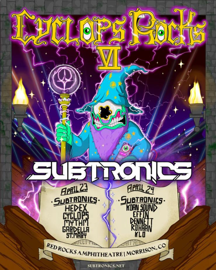 Electronic music artist and boundary pusher Subtronics has announced the sixth edition of Cyclops Rocks, his annual two-night run at Red Rocks Amphitheatre, taking place April 23–24. Cyclops Rocks 6 ...