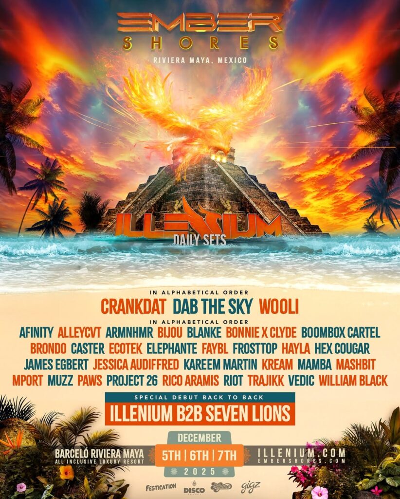 Illenials, rejoice! The full lineup for Ember Shores 2025 has been revealed, and it’s full of fan-favorite artists from top to bottom. This highly anticipated, all-inclusive destination festival, curated by the one and only ILLENIUM, is set to takeover the shores of Riviera Maya, Mexico, once again from December 5th to 7th, 2025.
