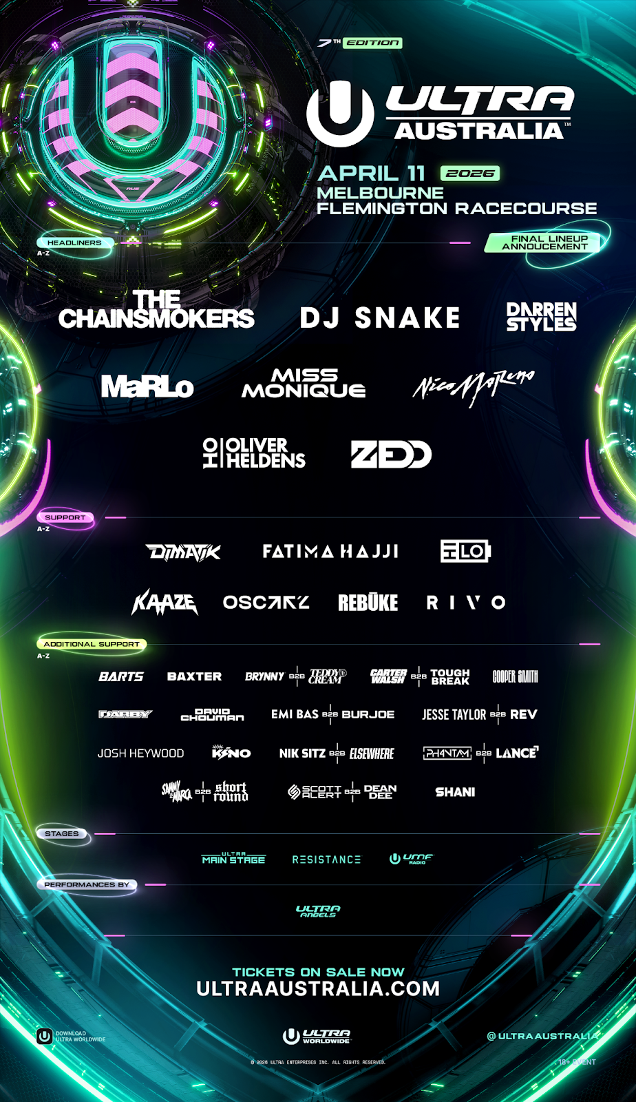 Ultra Australia is pulling out all the stops for 2026, and the final lineup announcement proves this year’s edition is set to be absolutely massive. The festival returns to Melbourne’s ...