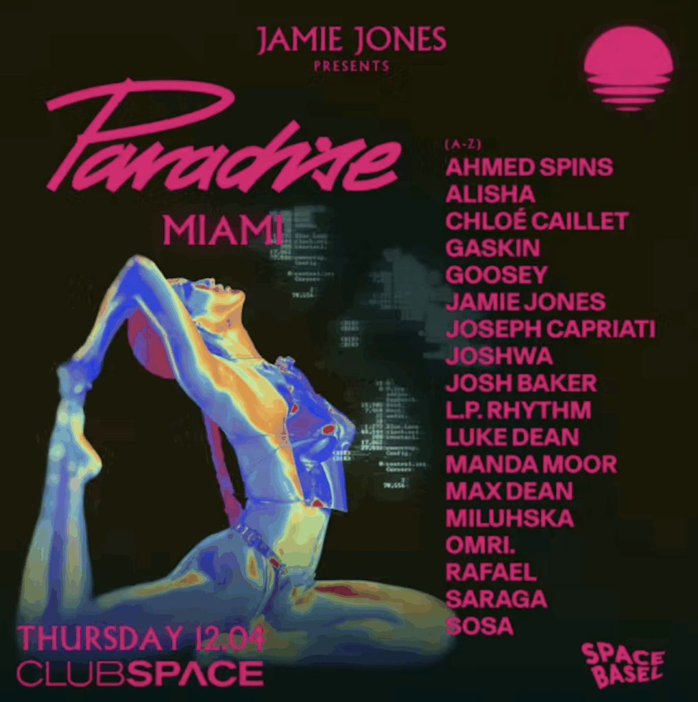 Brace yourself for the return of Art Basel Miami 2025! As North America’s undisputed king of contemporary art fairs, this iconic event is taking over the Miami Beach Convention Center once again. Since its debut in 2002, Art Basel has been the global meeting point for the art world’s elite, drawing over 80,000 visitors annually to soak up the creative energy. But let’s be honest—it’s about more than just the art on the walls. It’s about the electric atmosphere that takes over the city. From South Beach to Wynwood, the social scene explodes with celebrity sightings, exclusive rooftop soirées, and VIP galas. It is the place to see and be seen. Ready to dive in? EDM Tunes has curated the ultimate Art Basel Party Weekend for you. Join us from December 3–8, 2025, to experience the best music, nightlife, and culture Miami has to offer. Don’t miss out—come join the fun! Scroll to the bottom to get the 411 on the art shows and galleries around town. When: Wed, 3 Dec, 9:00 PM – Thursday, 4 Dec, 06:00 AM Where: Factory Town – 4800 NW 37th Ave, Miami, FL 33142 Who: Tiësto, HUGEL, Boys Noize, Josh Baker, Cole Knight, Kettama, Riordan, Layla Benitez, Slamm, MAXI MERAKI, Peace Control, GROSSOMODDO, Eran Hersh, Mark Di Meo, Kate Moon, David Löhlein, Nick León, LSDXOXO, Ultrathem, Winter Wrong, Luke Dean, Max Dean, Sidney Charles, L.P. Rhythm, Salome, Demi Riquísimo, Cromby, Lucaz, and Lousy Lover. Tickets: $65.01 When: Wed, Dec 3. 07:00 PM – 11:00 PM Where: Palm Tree Club Miami – 1819 79th Street Causeway, North Bay Village, FL 33141 Who: John Summit Tickets: Ticket Invite ONLY – Tables available to purchase HERE When: Wed, 3 Dec. 11:00 PM – Thur, 4 Dec. 05:00 AM Where: Floyd Miami – 34 NE 11th St suite b, Miami, FL 33132 Who: Nala, Max Styler, and OMRI. Tickets: $22.21 When: Wed, Dec 3, 6:00 PM Where: Printshop – 2300 Northwest 7th Avenue, Miami, Florida 33127, United States Who: Mau P, Ben Sterling, Mai Iachetti Tickets: $80 When: Thur, Dec 4, 11:00 PM Where: Club Space Miami – 34 NE 11th St, Miami, FL 33132, USA Who: Jamie Jones, Ahmed Spins, ALISHA, Chloé Caillet, Gaskin, Goosey, Joseph Capriati, Joshwa, Josh Baker, L.P. Rhythm, Luke Dean, Manda Moor, Max Dean, Miluhska, OMRI., RAFAEL, Saraga, and SOSA. Tickets: $40 When: Thu, Dec 4, 9:00 PM – Dec 5, 06:00 AM Where: Factory Town – 4800 NW 37th Ave, Miami, FL 33142 Who: Cloonee, Chris Stussy, Richie Hawtin, Skepta, Joezi, Ilario Alicante, SOSA, Discip, DJ Tennis, Kerri Chandler, Locklead, Ms. Mada, DJ Stingray 313, Lindsey Herbert, Feph, Green Velvet, Blackchild (ITA), Salomé Le Chat, Djammin, Kellie Allen, Nico de Andrea, Sparrow & Barbossa, and Yamagucci. Tickets: $75.01 Where: LIV Miami When: 10PM-5AM Lineup: Tiesto, Noizu When: Fri, Dec 5, 11:00 PM – Dec 6, 06:00 AM Where: Factory Town – 4800 NW 37th Ave, Miami, FL 33142 Who: Solomun, Beltran, HoneyLuv, Avalon Emerson, Butch, Deer Jade, KIMONOS, Max Styler, Steve Angello, The Dare, Tiga, Vintage Culture, berrakka, Dylan Brady, LSDXOXO, Nick León, MCR-T, Alves, Aline Umber, Danny Daze, DJ Tennis, and KinAhau. Tickets: $40 When: Fri, Dec 5, 11:00 PM Where: Club Space Miami – 34 NE 11th St, Miami, FL 33132, USA Who: Marco Carola, Ben Sterling, Cloonee, Franky Rizardo, GORDO, Mason Collective, and Ms. Mada. Tickets: $40 When: Fri, Dec 5, 11:00 PM Where: RC Cola Plant Miami – 550 NW 24th St, Miami, FL 33127 Who: CamelPhat, Dixon b2b Jimi Jules, Eric Prydz, Luciano, Neil Frances, Parra for Cuva, Amog, Ella Romand, Luca Saporito, Matt Caines, and Santiago Garcia. Tickets: $94.95 When: Fri, Dec 5, 8:00 PM Where: :Little River Studios – 300 NE 71st St, Miami, FL 33138 Who: Tiësto, Joezi, and Unkommon. Tickets: $57 Where: Location TBA – Miami Beach When: TBA Lineup: Adriatique + Surprise Performances Invite Only – RSVP Required – Available via NYLON Membership Where: LIV Miami When: 10PM-5AM Lineup: Black Coffee When: Fri, Dec 5, 11:00 PM Where: Floyd Miami – 34 NE 11th St suite b, Miami, FL 33132 Who: Sonja Moonear, Ryan Elliot, Alci, Danyelino, and Mai Iachetti. Tickets: $20 When: Fri, Dec 5, 05:00 PM Where: CASA NEOS – 40 SW North River Dr, Miami, FL 33128 Who: Adriatique Tickets: Reservations HERE Where: M2 When: 10PM-5AM Lineup: The Martinez Brothers & mote Where: Downtown Miami Courthouse @ 73 West Flagler When: 5PM-12AM When: Sat, Dec 6, 9:00 PM – Sun, Dec 7, 06:00 AM Where: Factory Town – 4800 NW 37th Ave, Miami, FL 33142 Who: Adriatique, AGELESS, Aline Umber, Ame, ANOTR, Jimi Jules, Arapu, Apollonia, Priku, Bedouin, Beltran, Chloé Caillet, Mau P, DESIREE, Chris Stussy, Dixon, Miguelle & Tons, mink, PAWSA, Tomas Station, Rony Seikaly, Seth Troxler, and O.BEE. Tickets: Sold out! – Join Wait List HERE! When: Sat, Dec 6, 11:00 PM Where: RC Cola Plant Miami – 550 NW 24th St, Miami, FL 33127 Who: Christian Löffler, Lee Burridge, LP Giobbi, Sofi Tukker, Whomadewho, Zamna Soundsystem, Anthony Middleton, Enamour, Facundo Mohrr, Lauren Ritter, Patrik Khach, Pippi Ciez, and Tim Green. Tickets: $74.95 Where: LIV Miami When: 10PM-5AM When: Sat, Dec 6, 11:00 PM Where: Floyd Miami – 34 NE 11th St suite b, Miami, FL 33132 Who: Ranger Trucco, L.P. Rhythm, Luke Dean, and Sem Jacobs. Tickets: $22.21 When: Sat, Dec 6, 05:00 PM Where: CASA NEOS – 40 SW North River Dr, Miami, FL 33128 Who: Pawsa Tickets: Reservations HERE When: Sun, Dec 7, 9:00 PM – Mon, Dec 8, 07:00 AM Where: Factory Town – 4800 NW 37th Ave, Miami, FL 33142 Who: MËSTIZA, Mason Collective – elrow Line Up TBA Tickets: $60.00+ When: Sun, Dec 7, 11 pm – Dec 9 Till Closing Where: Club Space Miami – 34 NE 11th St, Miami, FL 33132, USA Who: TBA Tickets: $30+ Where: Palm Tree Club Miami When: 3PM-10PM When: Sun, Dec 7, 05:00 PM Where: CASA NEOS – 40 SW North River Dr, Miami, FL 33128 Who: Marco Carola Tickets: Reservations HERE When: Sun, Dec 7, 12:00 PM – Mon, Dec 8, 03:00 AM Where: 1-800-Lucky- 143 NW 23rd St, Miami, FL 33127 Who: Andrea Quintero, Cocodrills, 