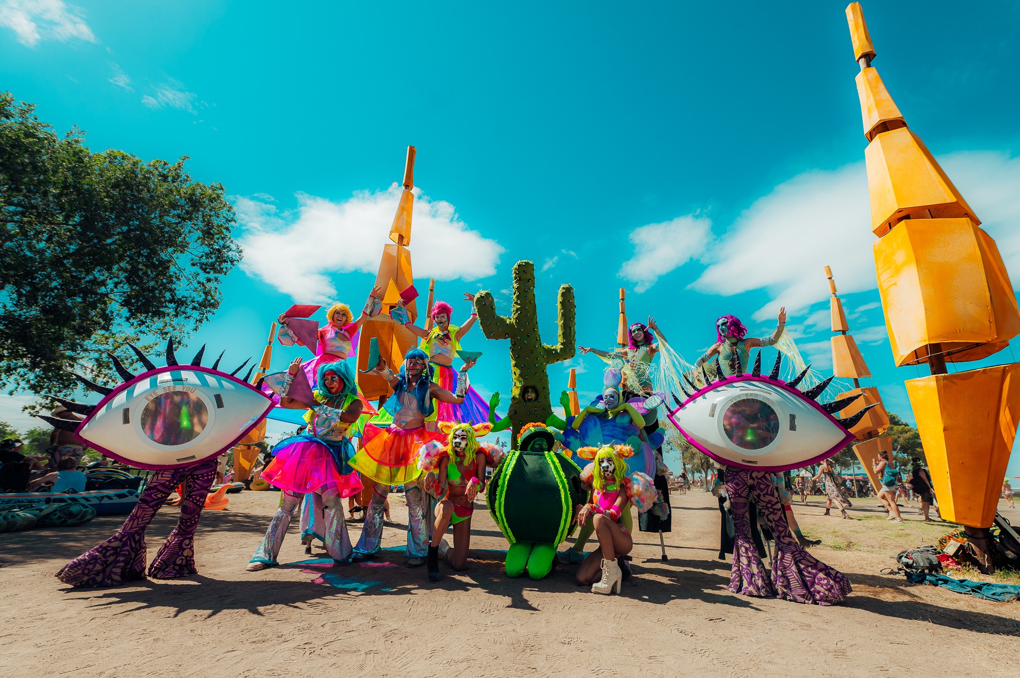 As we fall back into festival mode in full swing – and finally find ourselves recovered from attending this one, we’re here to say that the return of California-born festival Lightning in a Bottle was quite the success. It had a variety of musical acts, creative projects, yoga and meditation practices, as well as some dank dumplings (Dump City for the win). The festival, put on every year by The DoLaB, takes place at Lake Buena Vista outside of Bakersfield, California. The gates open on Wednesday and go all the way through Memorial Day. Beyond the fantastic musical lineup, this place has the feel of a festival that welcomes all – a gathering of adults and children alike, teenagers and babies, yogis and foodies, dancers and producers. This is the kind of festival where lost phones are returned to their owners, and bags may be left unattended. It’s good vibes abound. The weather for this year’s event started off hot, and got progressively cooler as the weekend went on (what a relief!). It was always warm enough during the day for a dip in the lake, which also offered a good place to sponge oneself off with a bandana in-between sets (which was particularly handy when the dancefloor became dusty). The evening temperatures were perfect for all-night dancing, and it was only on Sunday evening that we felt a jacket was really necessary. Some interesting desert elements that one should prepare oneself for: we had a little kangaroo rat that lived in our campsite with us. They look like little kangaroos and hop around, so we were careful to make sure we kept our food in sealed tubs. There were also ground squirrels who liked to dig holes, so the festival grounds were full of little holes to twist an ankle in. The grounds were also very uneven, so walking with awareness was key. The desert is also host to a variety of insects. Keeping your tent zipped up is always a must. In one of the porto-potties, I saw the biggest black widow spider I had ever seen. She didn’t hurt anyone, but she was definitely a factor of consideration. Another unexpected element of camping in the desert were the dust devils. These are like mini-tornados that can bluster unannounced through the campsites. Our group was one of the lucky ones, but on both Friday and Saturday morning, we saw tornados rip through the camping lots. Pop-ups and tents were flipped and knocked over. But besides the uncontrollable elements of mother nature, the festival was quite seamless. Getting in to the festival was a breeze. There were enough access points and food options that lines didn’t really build up. The music was ample and varied; and with so many other options available for classes, experiences, and tastings, niche groups could find themselves coalescing with those who share similar interests. There were of all kinds of energy: be it western themed with cowboys, swinging doors, and luscious pickles. Or ultraviolet with bright orange martians, yellow-green umbrellas, and neon couches. There was the “Woogie” stage that felt like a giant glowing mushroom forest. And a zen’d out teepee stage with a wrap around view of the water, and amber lights that had a calming peaceful aesthetic. Little art cars, would scoot about (pineapples, willow-trees, and ice cream trucks), each with their own energy where little parties would manifest, and people could hop on and off. And the main stages of Lightning and Thunder stages had cutting edge technology and very very good sound. At Lightning in a Bottle, there is so much great music going on that it is impossible to do it all. Running around does you no good either in the desert heat. And the bandwidth for phones reaches its breaking point with thousands of people attempting to communicate. You may as well drop in and enjoy where you are. Such moments occurred when the need to move settled. Evan Hatfield is an FKJ style sitarist and saxophonist who set up his whole rig on the beach near the Junkyard stage. I had wandered there because of a Michael Jackson remix that always makes me dance. And suddenly, there were hundreds of people all around us, dancing to this wild set by this dude rocking out on the sitar with a massive sound mixing board. You could literally stand right next to him and watch him go. Another time, I walked over toward the Crossroads tent to meditate. Coming out of the meditation, I began to dance to this group called Sukira. As I danced, their music picked up and changed. It got more energetic and more people joined in. It turns out they were doing a sound check and were feeding off and giving back to the dancers in the tent. They weren’t scheduled for hours but took the moment to play for us. What a gift: Lightning caught. Lightning in a Bottle is a festival that shies away from the mainstream – and has truly played a role in being a catalyst for many moving from mainstream events into more of the world of boutique, eclectic, this-is-not-Coachella events. It is known for bringing in experimental sounds that are a little ahead of the wave of what is popular, and this year proved that even further. Some other great acts that are absolutely worth noting include , , Monolink, , and The Librarian. and both had killer closing sets for Saturday and Sunday nights – and the three-way b2b2b with Patricio, Marques Wyatt, and Monolink to finish out the Junkyard on Sunday evening was magical. The energy was palpable to the far reaches of the campgrounds. This was the first year I had returned to LiB at the new venue – I was a long-time LiB attendee when it was in Bradley, and testing the waters of the new space was an intriguing endeavor. Though I wasn’t sure what to expect, I was excited to see music that had changed my life over the years on such an impresssive lineup. The most impactful set was none other than Four Tet – though Maya Jane Coles comes in at a close second. Four Tet did that damn thing that he always does so well, bouncing back and forth across gen